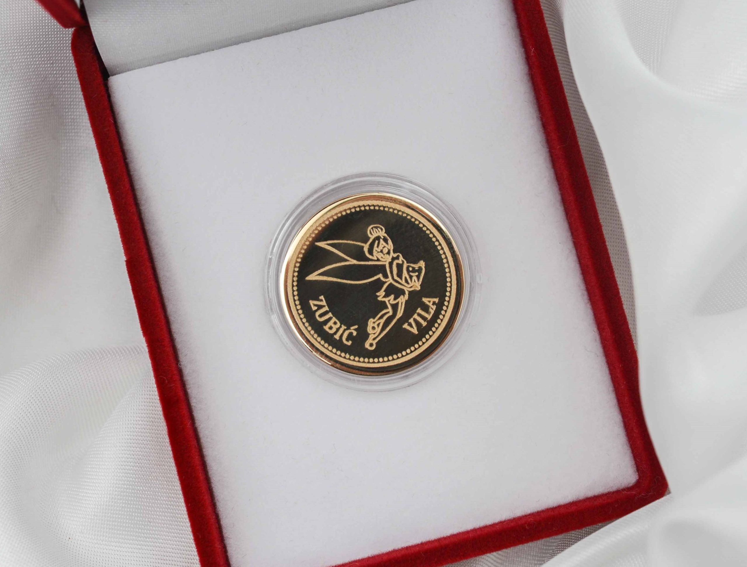 Zlatnik Zubić Vila izrađen je od 14-karatnog zlata (585 finoće). Neka Zlatnik Zubić Vila postane dragoceni talisman koji će vaše dete nositi kao simbol nevinosti, mašte i zaštite.